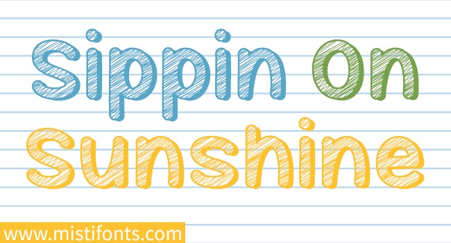 Mf Sippin on Sunshine – The fact that this font is shaded in with color adds a youthful aspect to it. It would look very nice with a shaded pink since this is also a love story apart from the beach party. This font reminds me of teenagers. I associate it with a teenager waiting for summer to come and scribbling on his notepad.